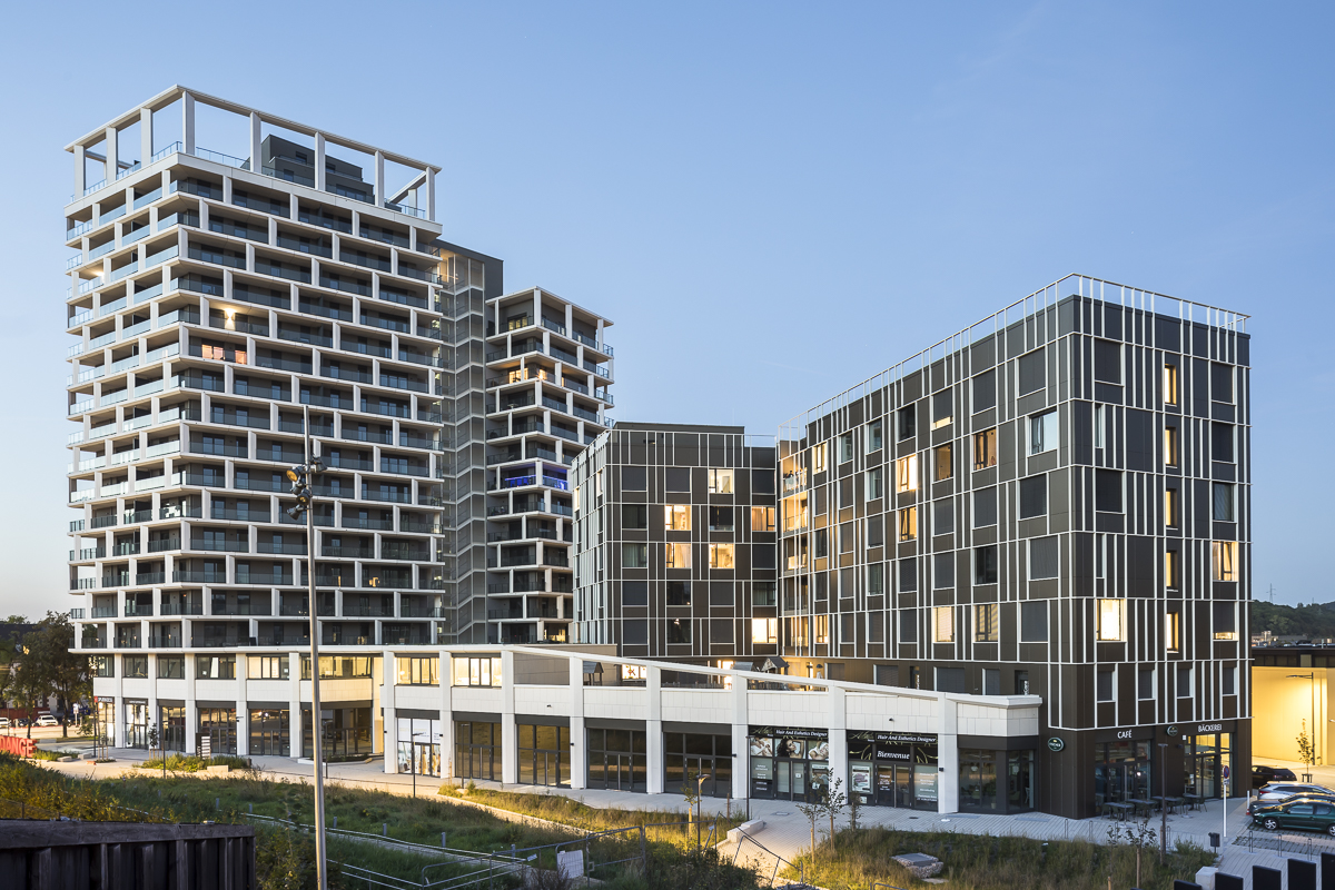 ‘Gravity’ in Differdange is a high-profile contemporary residential tower rising in a rapidly developing region. Its timeless, refined design is a product of the internationally renowned and acclaimed Moreno Architecture and Petitdidier Prioux Architectes architectural firms. The building is a genuine landmark that sets the tone for its surroundings. It has been given ingenious mixed use: 80 residential units on 10,000 m2, 5000 m2 of office space, 4000 m2 of commercial space on the ground floor, an 800 m2 day-care centre and 120 studios (‘co-living’ option) on 5000 m2. Commissioning is planned for the summer of 2023.